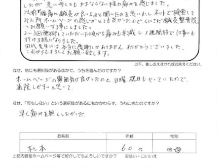 お困りの症状の発端や経過、治療歴などは患者様によって全く違います。