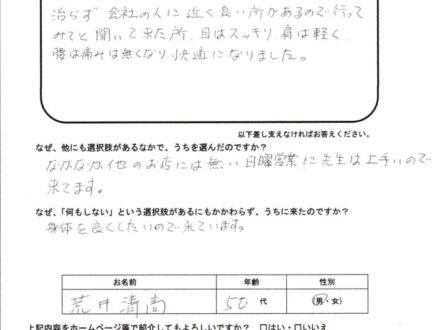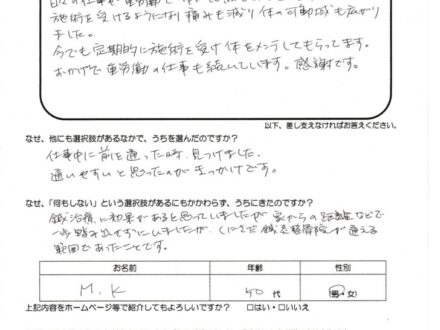 その為当院では、症状によって一元化されたアプローチは取らずに関連する部位や、一見全く関係のない部位にアプローチを行います。提供する施術内容についても、当院の施術をこれから受けられる患者様自身が、内容と効果をご理解、ご納得して頂ける説明を必ず行い、より安心感を持って二人三脚で改善に向けたアプローチをいたします。
