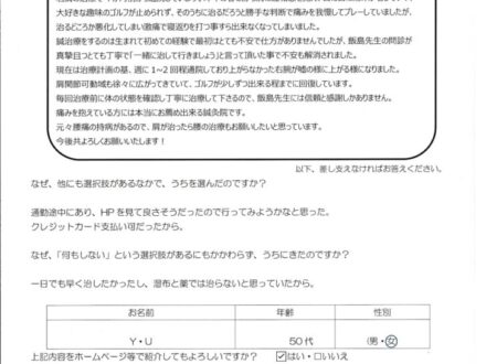 「右腕が嘘のように上がる様にな……
