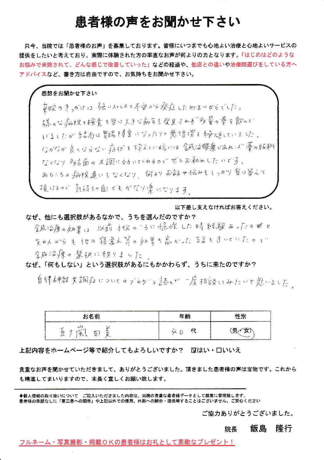 患者さんの感想