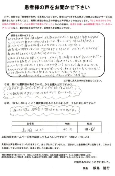 飯島先生はよくお話を聞いてくださり、どのような治療をするのか話してくれました。